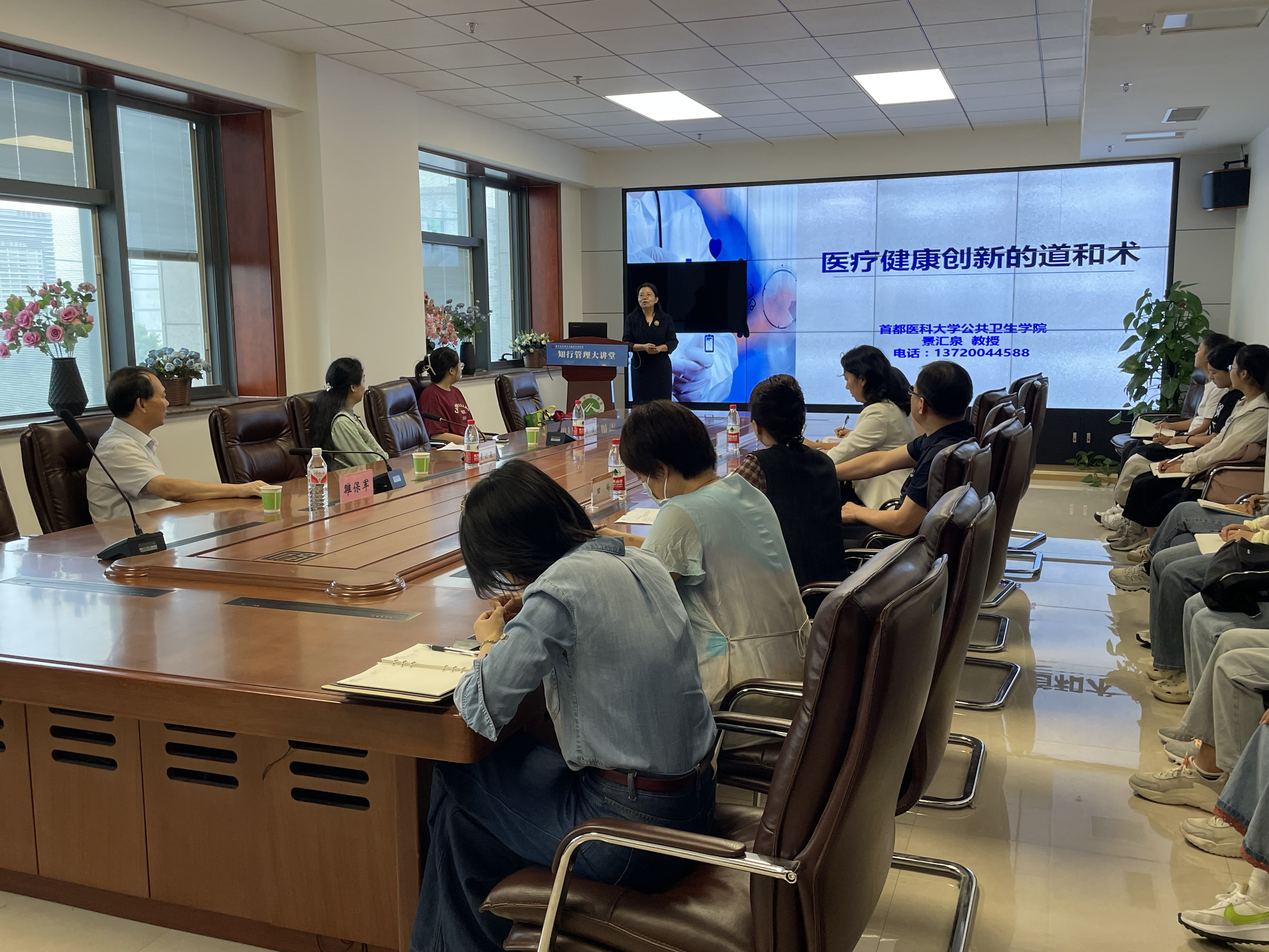 景汇泉教授以《医疗健康创新的道和术》为题,从当前医疗健康的方针政策、健康管理的现实状况和目标要求以及医疗健康创新的未来发展等方面系统讲解了医疗健康与科技创新的关联性和重要现实意义,同时就当前和今后高校健康服务与管理人才培养和实训体系建构、医学教育管理与改革实践等问题进行了深入的思考和探索。