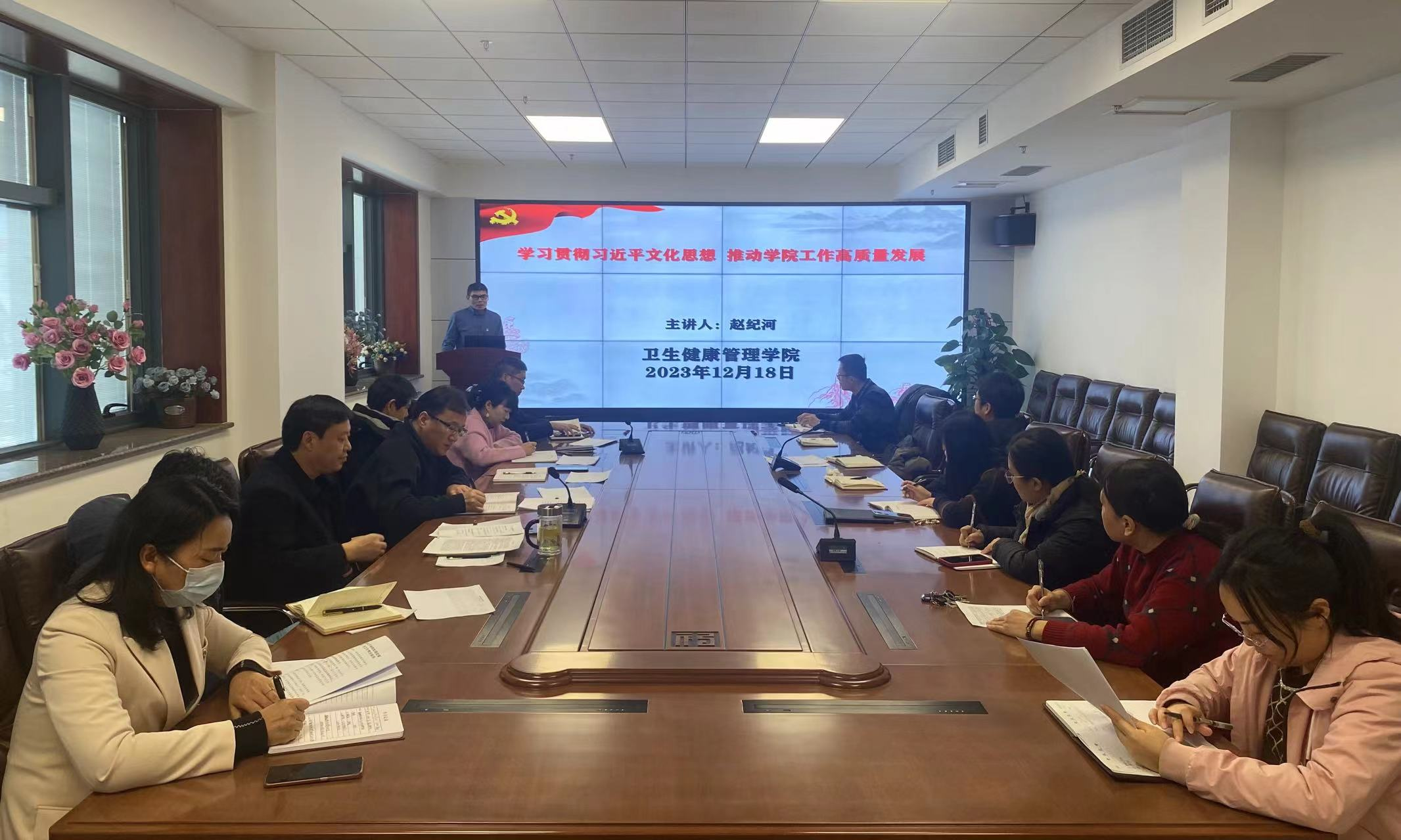 2023年12月18日上午,卫生健康管理学院党委在图书信息楼南楼5楼508会议室召开理论学习中心组(扩大)专题学习会。学院全体处级干部、党政办公室主任、教学管理与专业建设办公室主任、研究生与科研管理办公室主任、学生工作办公室主任、各党支部书记等参加会议。会议由学院党委书记崔金奇主持。