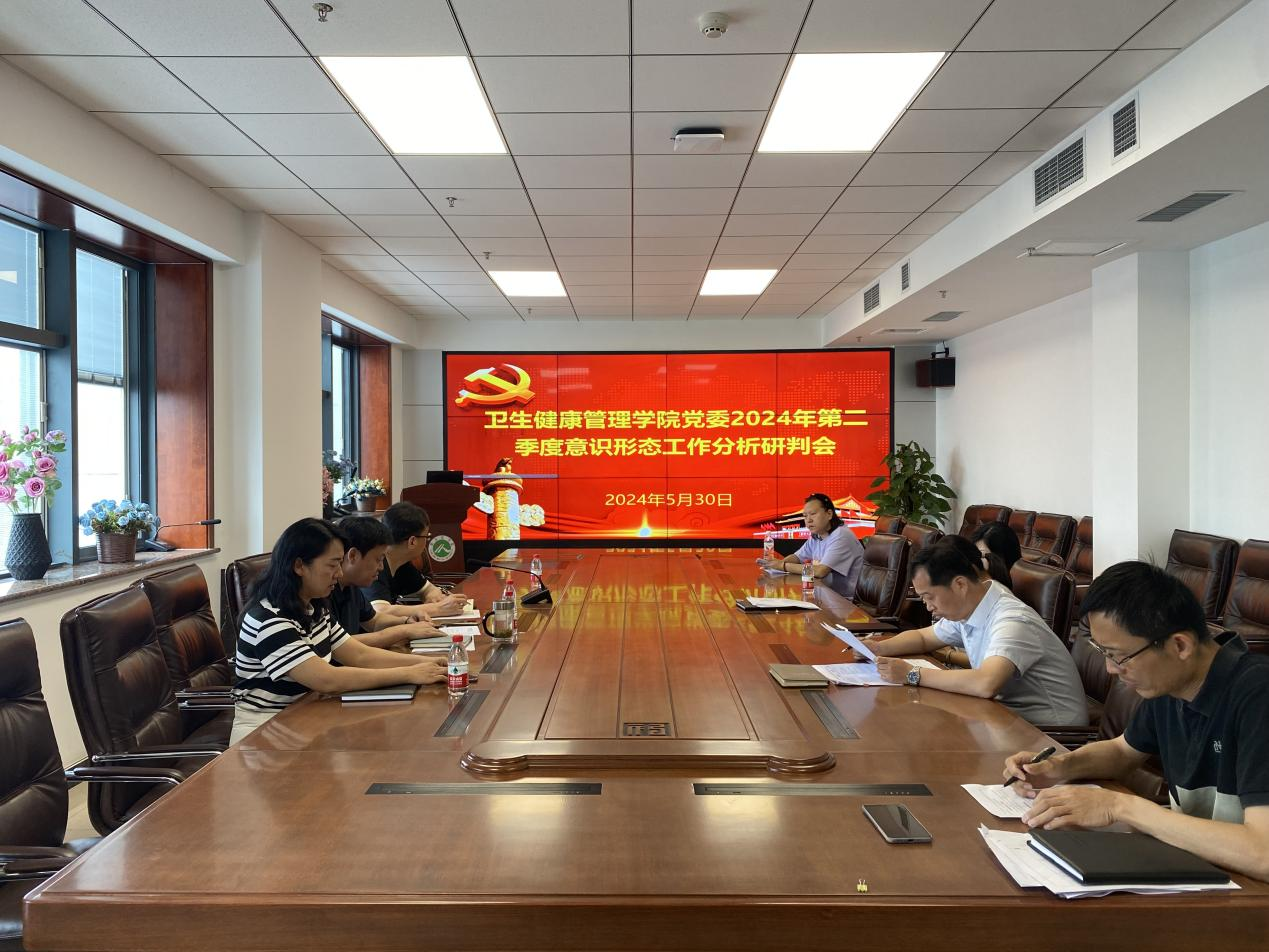 卫生健康管理学院党委于2024年5月30日上午在图书信息楼南楼508会议室召开第二季度意识形态工作分析研判会。会议旨在贯彻落实校党委关于意识形态工作的安排部署,进一步加强和改进学院的意识形态工作。会议由党委副书记高阳主持,学院党政班子成员、相关科室负责人和党支部书记等出席。