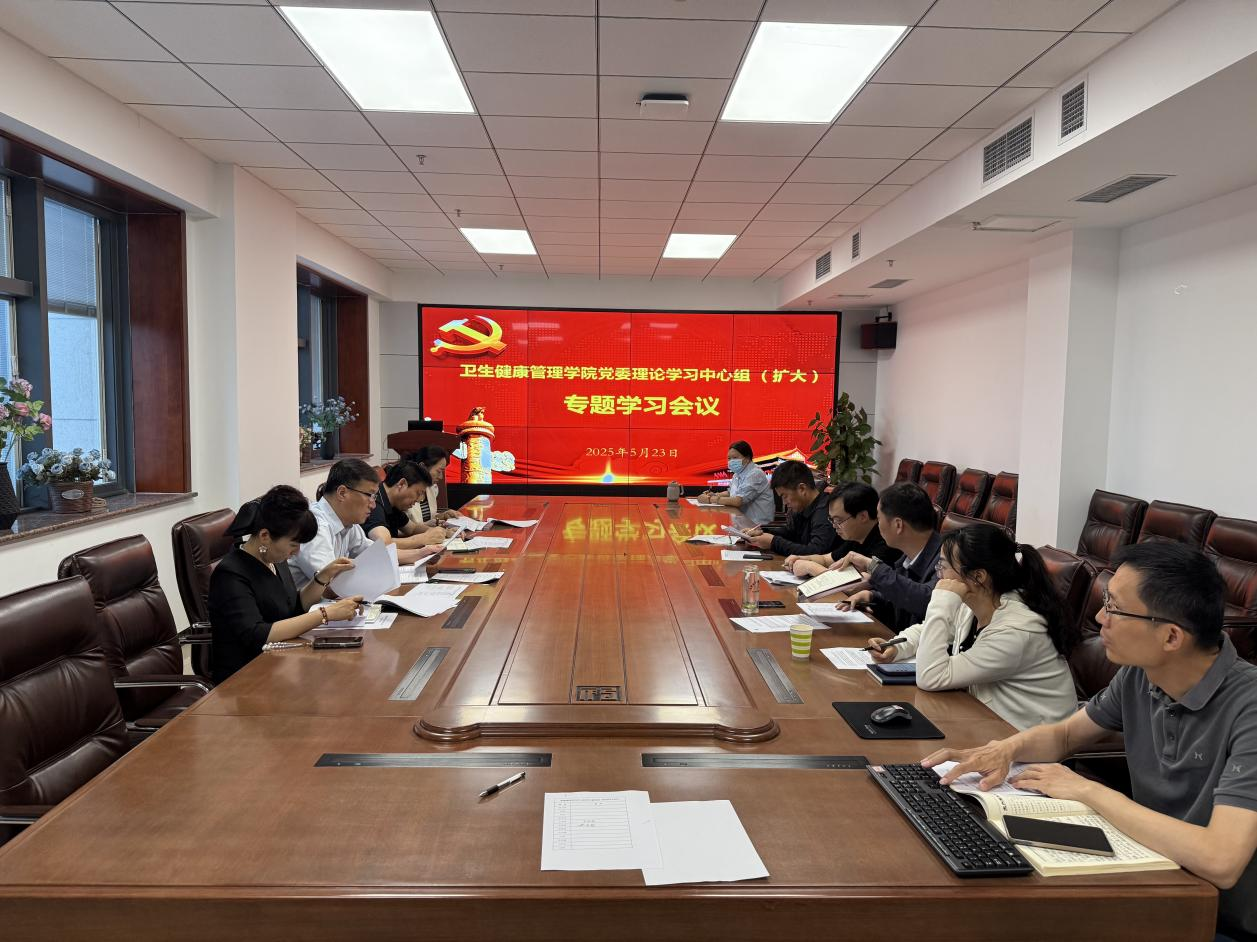 2025年5月23日下午,卫生健康管理学院党委理论学习中心组(扩大)专题学习会议在学院508会议室召开。学院领导班子成员、各办公室主任及各党支部书记等参加会议。会议由学院党委书记崔金奇主持。