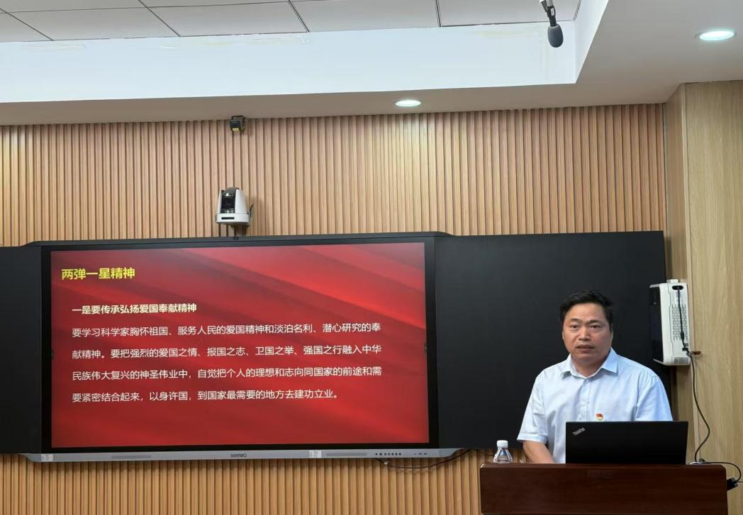 课堂上,王天云副校长从“两弹一星”事业的历史背景出发,深入讲述了以钱学森、钱三强、郭永怀等为代表的科学家群体坚定信念、勇攀高峰、甘于奉献的感人事迹。他指出,“两弹一星”精神集中体现了我国科技工作者为国家强盛和民族复兴无私奉献的家国情怀,是中国精神的重要组成部分。