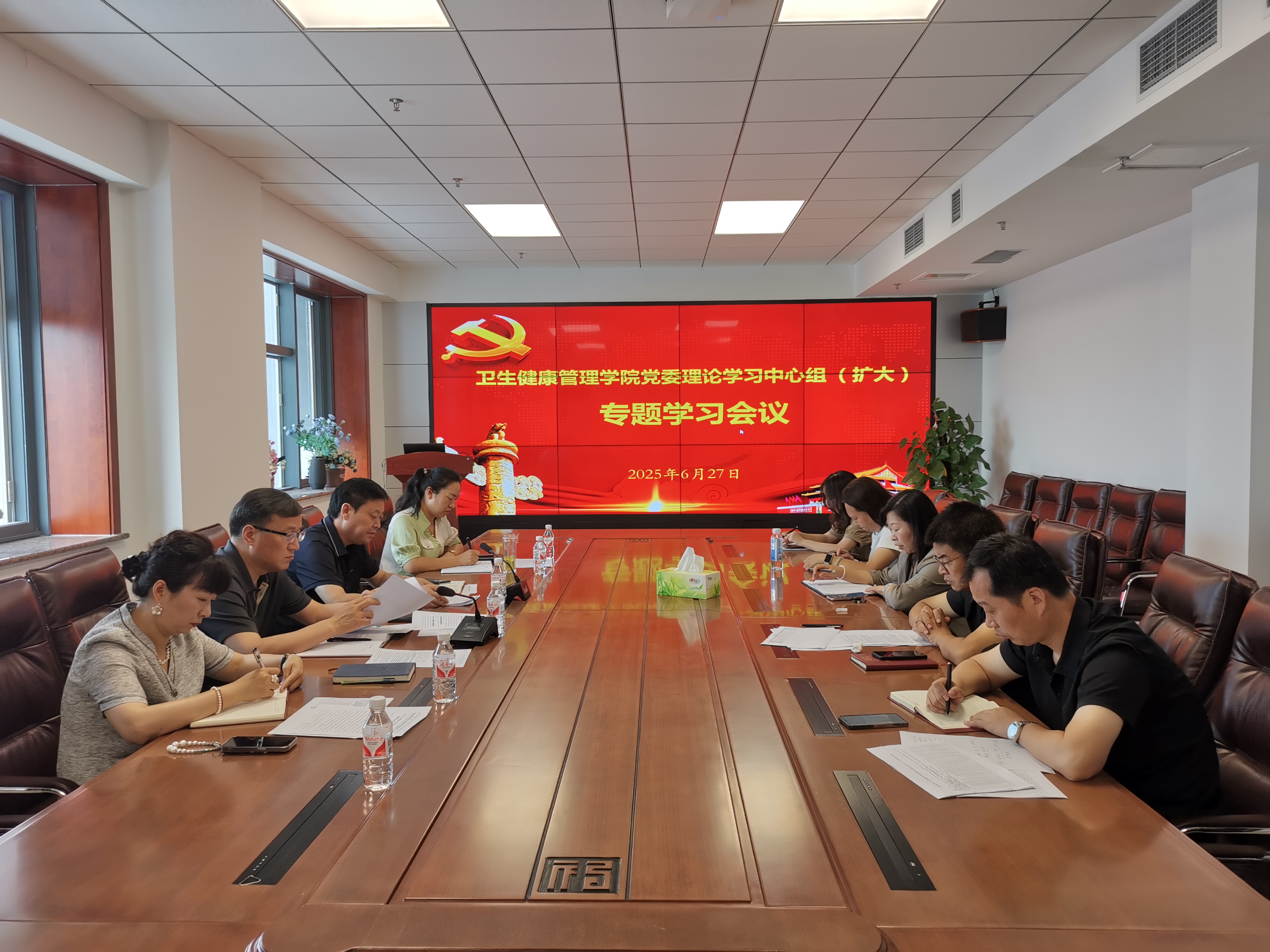 2025年6月27日上午,卫生健康管理学院党委理论学习中心组(扩大)专题学习会议在学院会议室顺利召开。深入学习贯彻党的十八大以来党中央关于深入贯彻中央八项规定精神的重要部署,总结成效,交流经验,推动学院作风建设持续向好。学院领导班子成员、各办公室主任及各党支部书记等参加会议。会议由学院党委书记崔金奇主持。