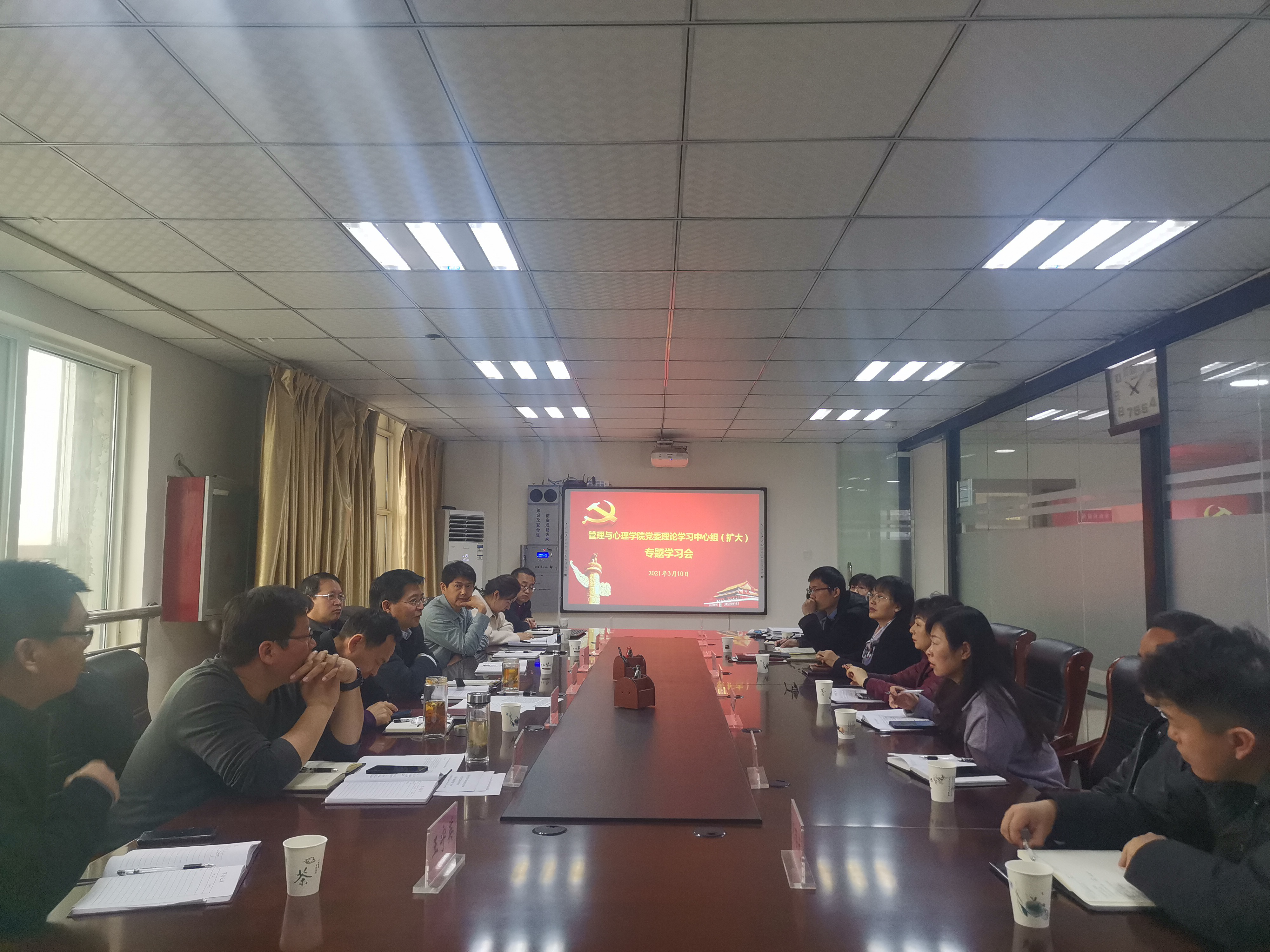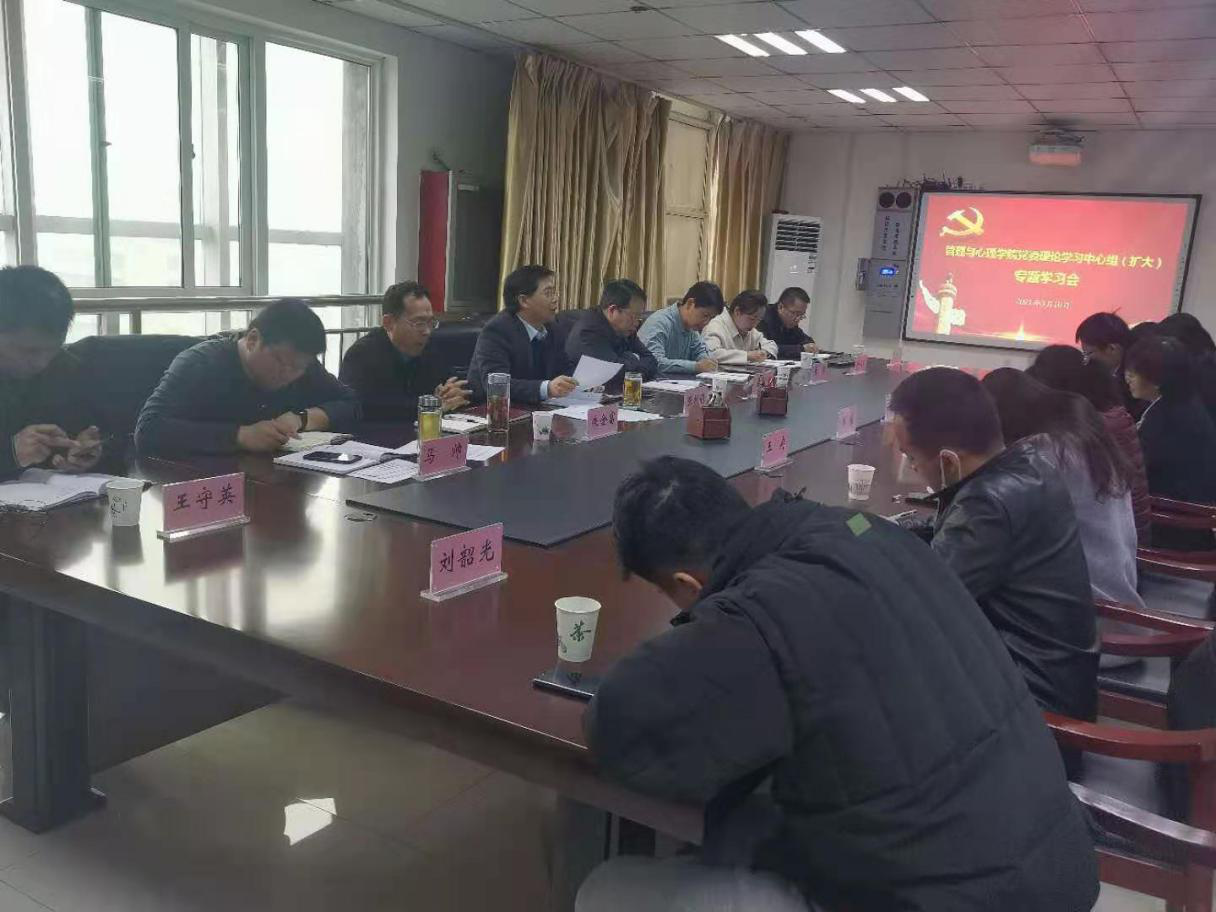 (文/王海涛 图/冯申梅)3月10日上午,管理与心理学院党委在西校区综合楼7楼会议室召开理论学习中心组(扩大)专题学习会,就十届省纪委六次全会精神、全国全省党史学习教育动员大会精神进行专题学习。学院党委理论学习中心组成员、学院党政班子成员、党政办公室主任和党支部书记等参加了会议。会议由党委书记张献领主持。