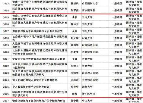 9月3日,全国哲学社会科学规划办公室公布了2021年度国家社科基金项目立项名单,我院田梅博士主持申报的《移动社交媒体情境下偶遇健康信息利用行为机理及模式研究》和张军亮博士主持申报的《医疗健康大数据资产管理模式与再利用机制研究》获国家社科一般项目立项,立项学科均为图书馆·情报与文献学,这是自2015年以来我院先后获批5项国家级科研项目之后在国家级项目立项数量上的又一次突破。