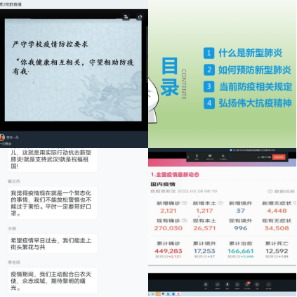 (文/李金鑫 裴彦斐)为深入贯彻习近平总书记关于做好新冠肺炎疫情防控工作的重要指示批示精神,全面贯彻落实好省委、教育厅“外防输入、内防反弹、动态清零”的防疫精神,按照学校的部署要求积极应对疫情防控严峻形势,进一步统一思想、提高认识、全力做好学校疫情防控工作,树立风险意识,强化底线思维,确保学生身心健康和校园安全稳定。3月下旬,管理学院各年级班主任于线上召开“健康你我相互相关,抗疫有我守望相助”的主题班会,管理学院全体学生共同参加。
