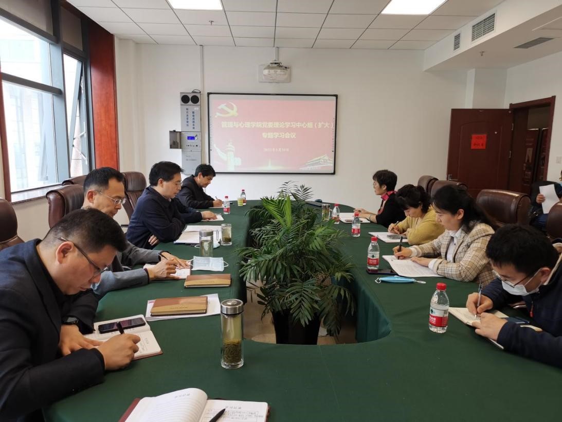 5月10日下午,管理与心理学院党委理论学习中心组(扩大)学习会议在图书信息楼619会议室召开。学院全体处级干部、党政办公室主任、教学管理与专业建设办公室主任、研究生与科研管理办公室主任、学生工作办公室主任及全体辅导员等参加学习。会议由党委书记张献领主持。