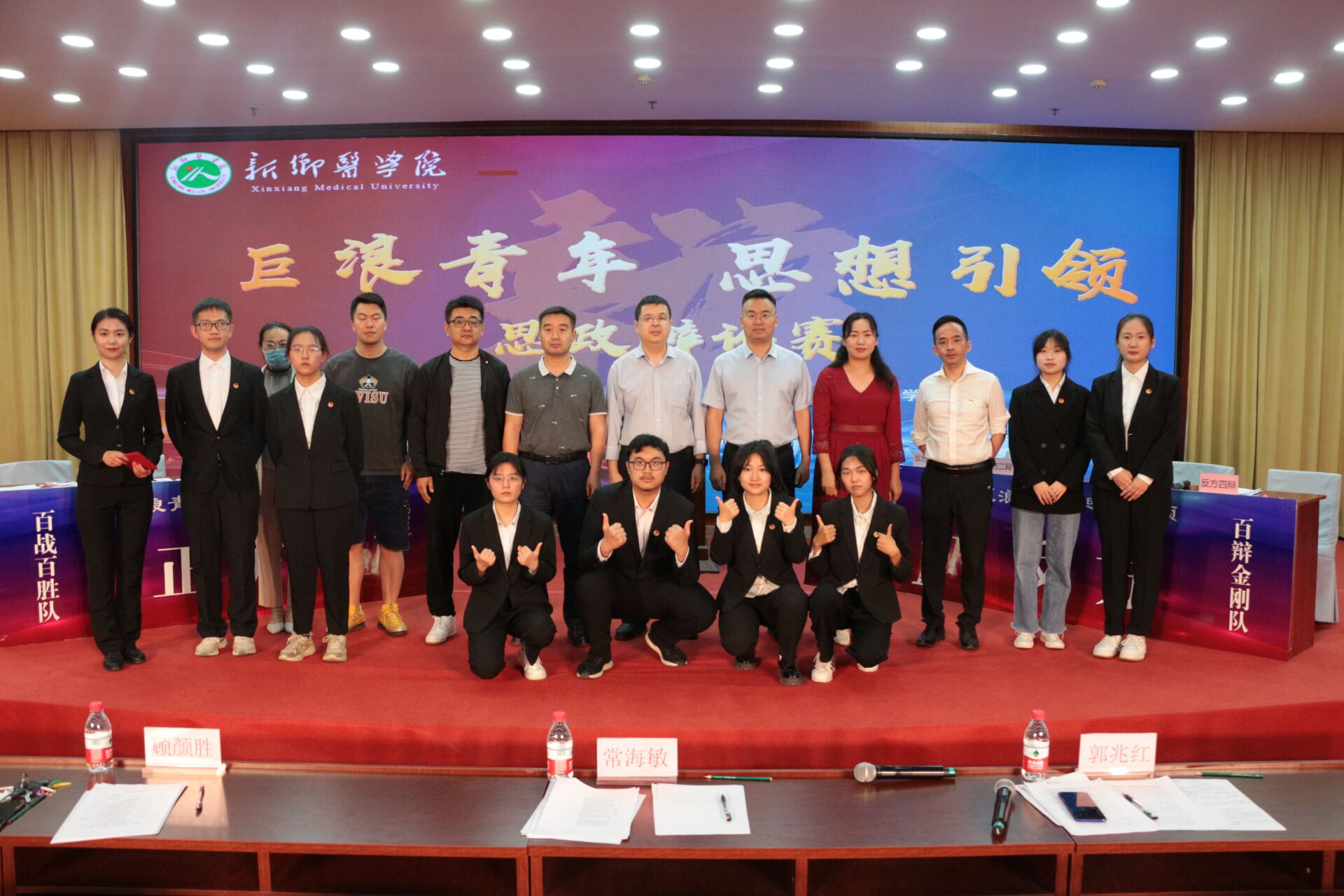 经过激烈的角逐,“百战百胜队”获得冠军,“百辩金刚队”获亚军,范梦宇(正方二辩)荣获“最佳辩手”称号,闫知琳(正方三辩)与刘滢(反方四辩)获得“优秀口才辩手”荣誉。