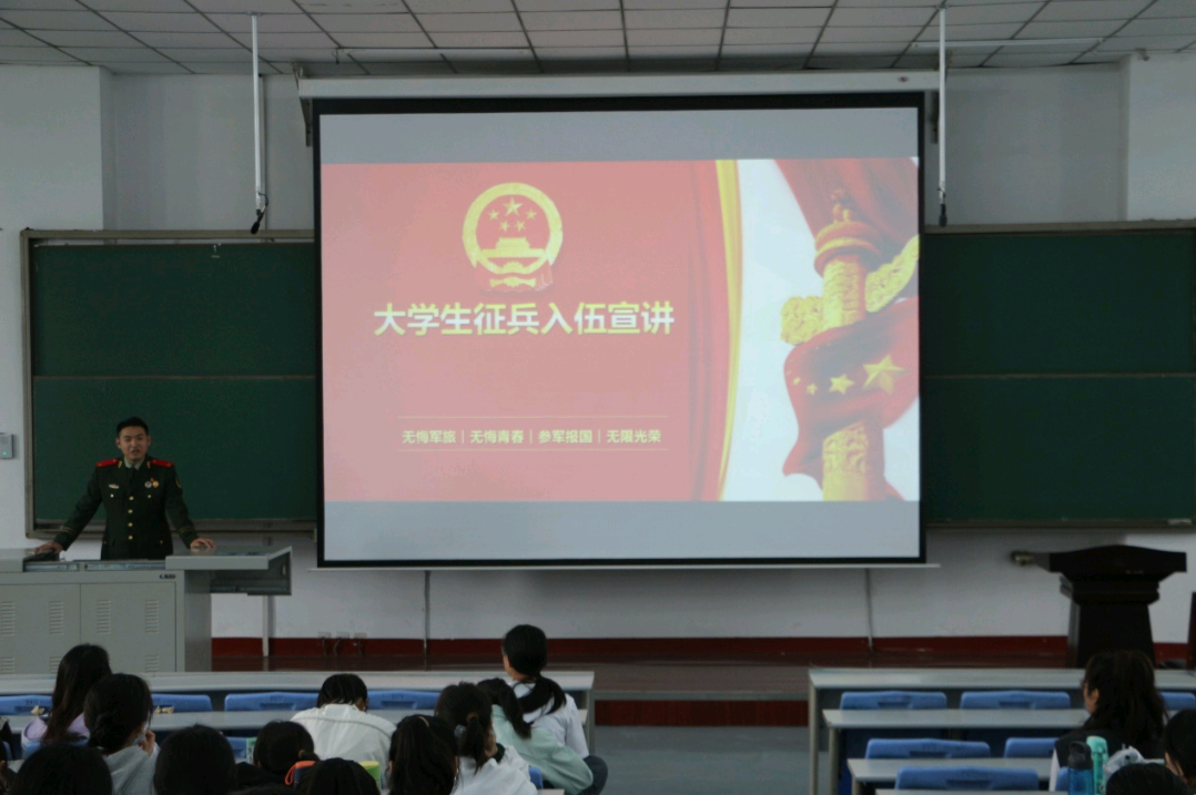 (文/温圣茹)为激发同学们的爱国热情,增强学生历史责任感和使命感,鼓励学生掌握基本的军事知识和技能,点燃大学生参军入伍的热情。我院邀请退伍大学生刘普斌于4月14日在博学楼D2教室为2021、2022级全体同学做征兵宣讲。