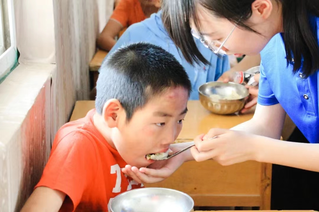 实践队员分为两组,一组负责陪伴孩子们进行益智游戏和趣味阅读等教育活动,与孩子们在欢声笑语中度过美好时光,亲切的语言和温暖的笑容消除了孩子们与实践队员沟通的屏障。二组在工作人员带领下进入厨房,为孩子们包饺子,精心准备午餐。在托管所老师们的帮助下,实践队员们圆满完成助教和午餐准备工作,正午时分,孩子们吃上了热气腾腾的饺子。