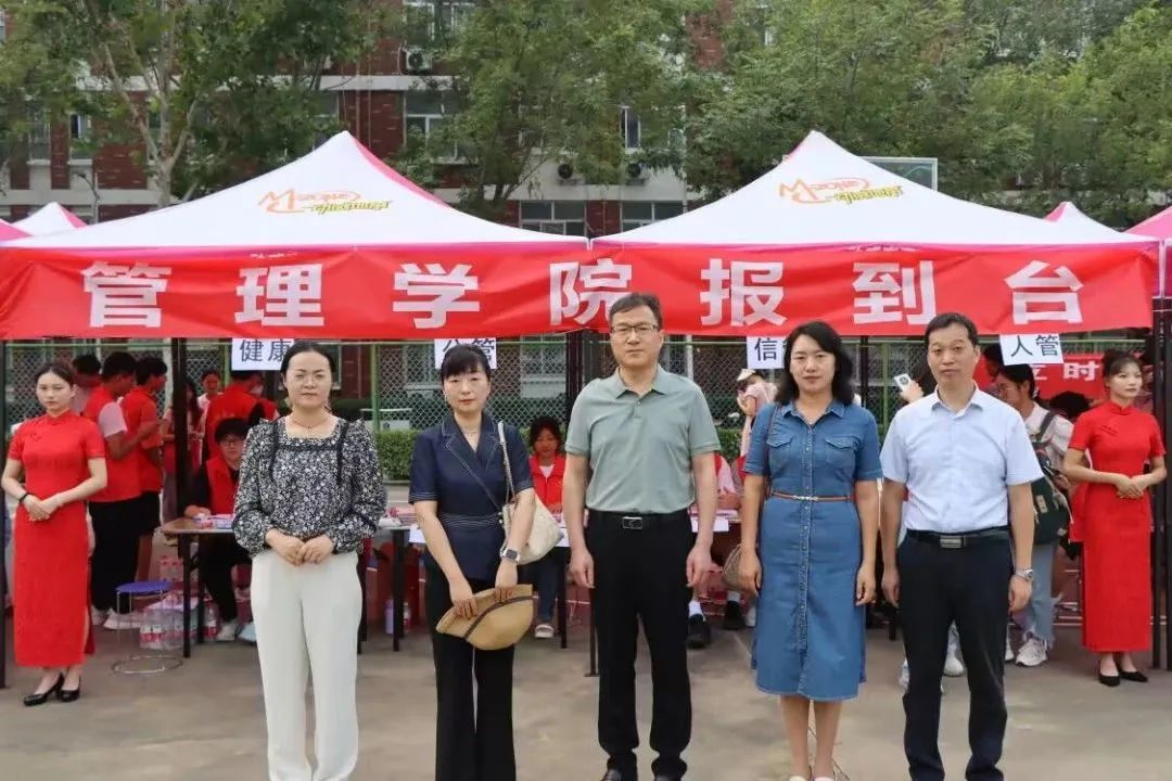 9月1日至2日,我院举办迎新活动,2023级新生陆续报到。来自五湖四海的学子满怀希望与梦想,迈进向往已久的大学校园。9月1日上午,在新生入学报到高峰期,管理学院党委书记崔金奇,副院长田梅,党委副书记郭兆红,团委书记岳学强,辅导员老师李金鑫、刘韶光和刘雨薇一行亲临报到现场,指导检查迎新工作。