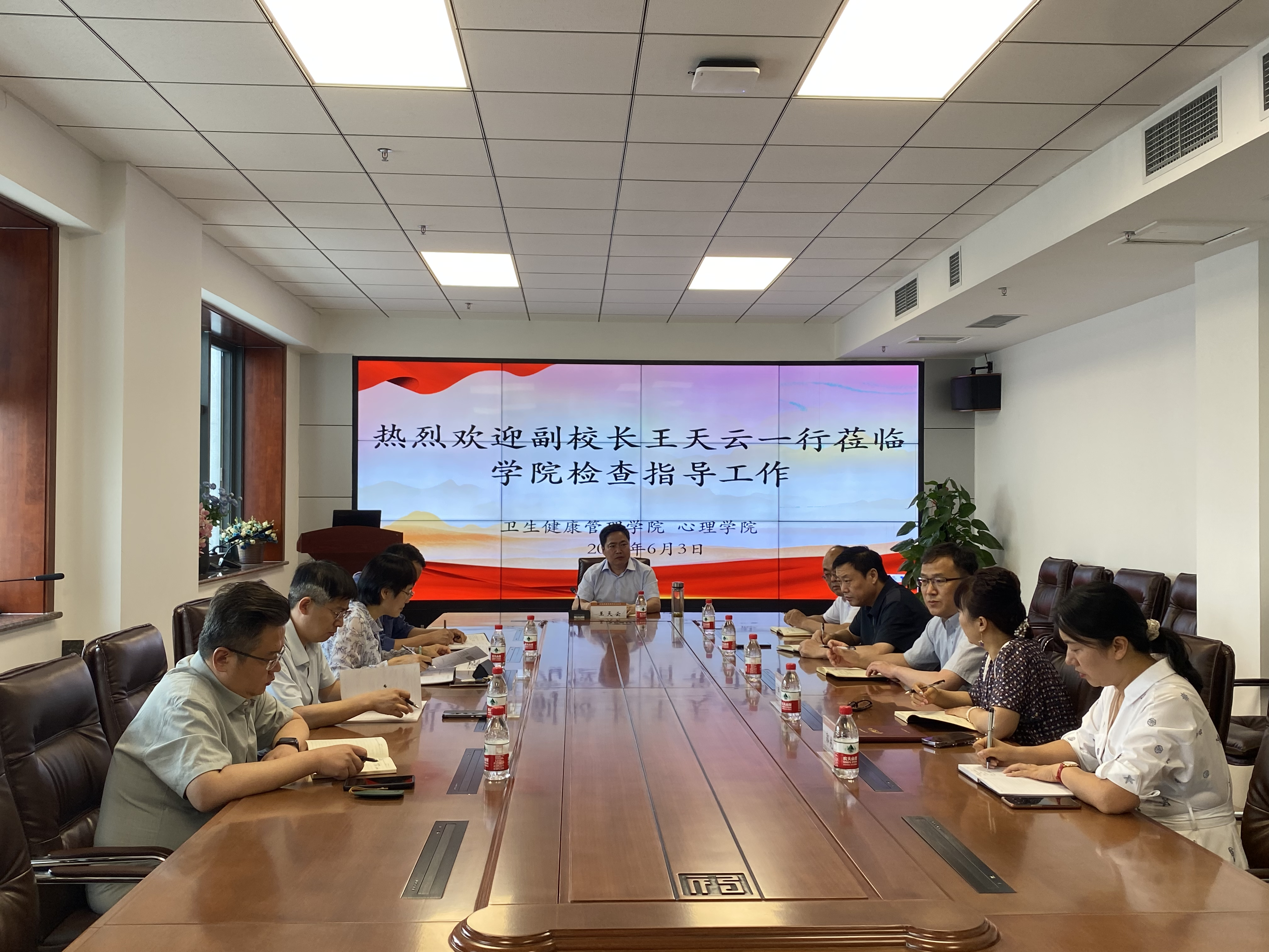 6月3日下午,校党委委员、副校长王天云到联系单位卫生健康管理学院、心理学院开展调研工作。校党政办公室副主任、法制办公室主任马献艺陪同调研。卫生健康管理学院、心理学院党政领导参加调研。