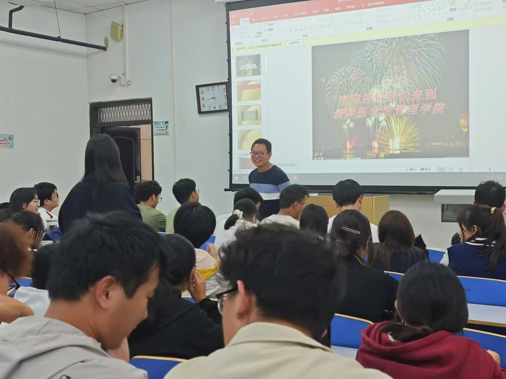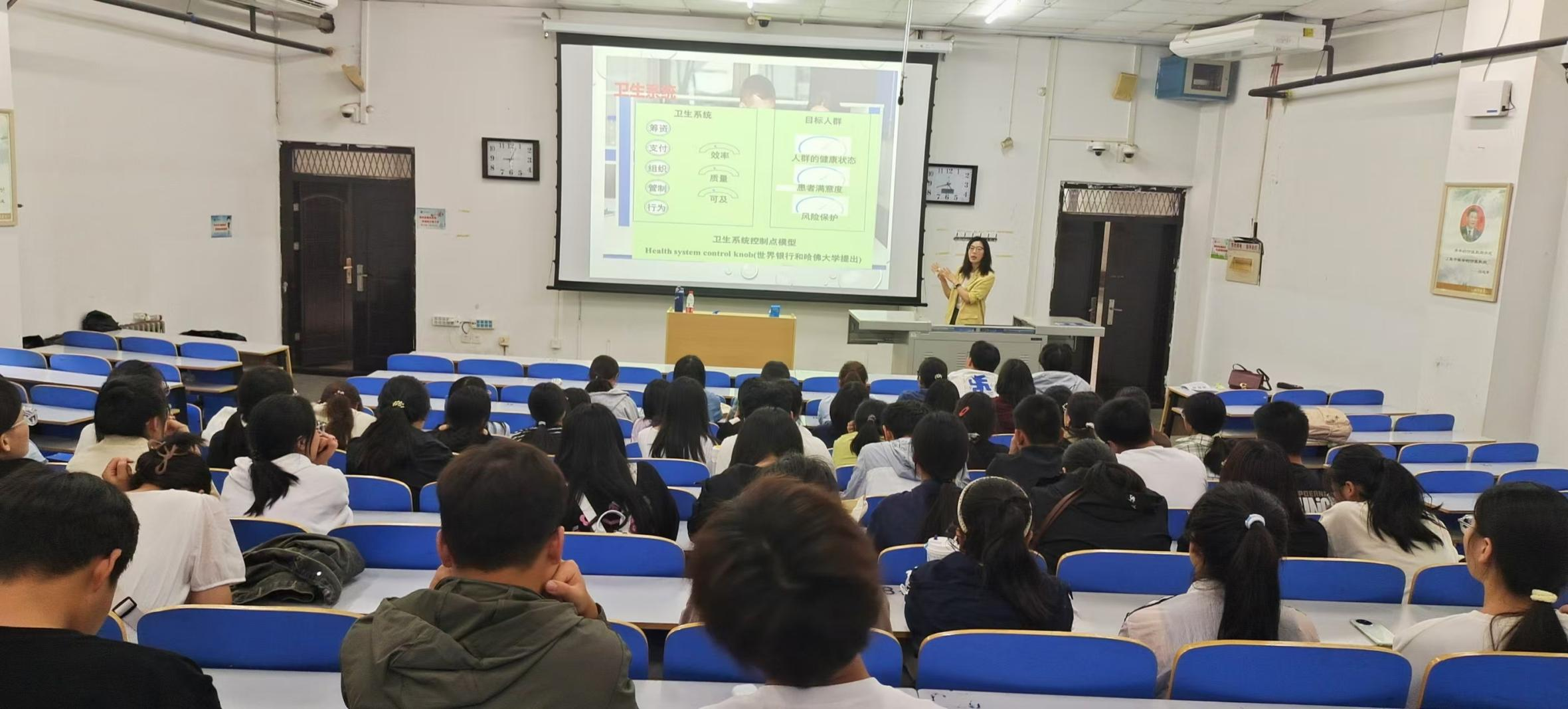 为增进新生对专业培养目标及专业发展前景的认知,明晰学校人才培养目标,帮助新生深入了解专业相关就业知识,深化对职业规划的认识,我院于2024年9月23日在博济楼2211教室开展新生入学教育系列之学业与发展第二讲。本次活动由卫生健康管理学院张军亮老师、张利江老师、张玲老师主讲,2024级全体新生参加。