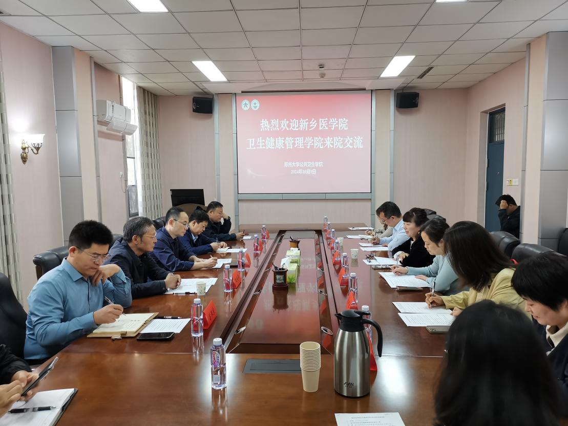 为加强我院与郑州大学公共卫生学院之间的交流沟通,进一步提升我院在学科专业建设、人才培养、平台建设与社会服务等方面的能力和水平,持续推动教育高质量发展,10月9日上午,华亿在线手机版(大中国区)卫生健康管理学院副院长田梅,卫辉市人民医院党委书记、院长张伟及新乡市医疗保障局医药服务管理科主任科员陈静等一行七人到郑州大学公共卫生学院进行交流合作。郑州大学公共卫生学院党委书记吴建、副院长郝长付、各科室主任等参加。调研座谈会由吴建主持。