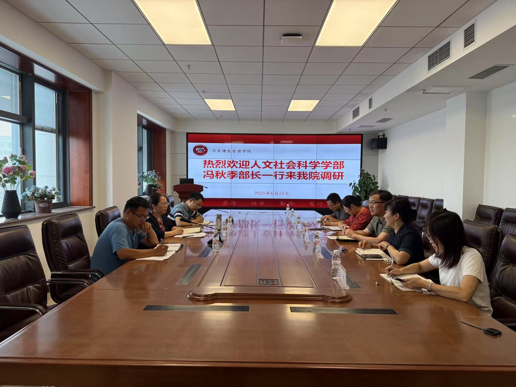 6月23日下午,人文社会科学学部冯秋季部长一行莅临我院,就学院在“十五五”规划前的学科建设情况展开深入调研。本次调研旨在全面了解学院学科建设现状,为制定科学合理、切实可行的“十五五”规划提供有力依据,推动学院学科建设迈向新台阶。会议在卫生健康管理学院508会议室召开,学院党委书记崔金奇、副院长(主持工作)田梅及各学科负责人参加会议。