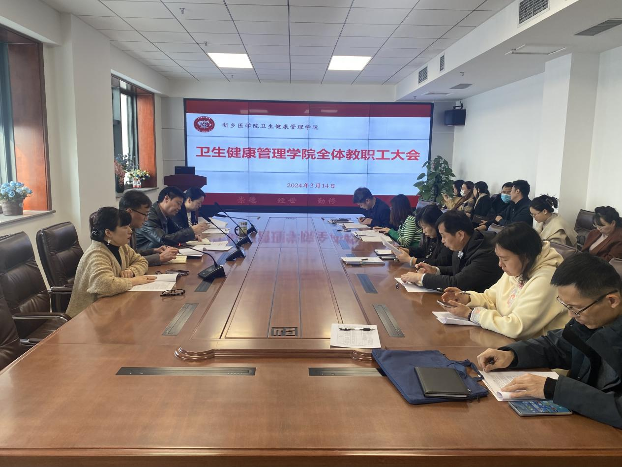 为确保新学期各项工作顺利开展,3月14日上午,卫生健康管理学院在图书信息楼5楼508会议室召开新学期全体教职工大会。领导班子成员及全体教职工参加会议,会议由学院副院长田梅主持。