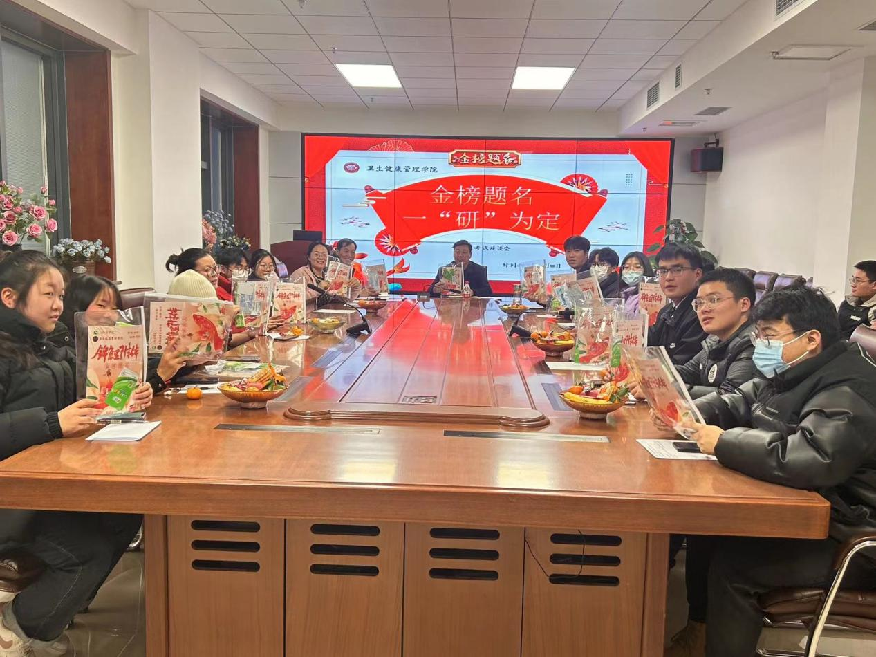 为缓解我院毕业生备考压力,鼓舞士气,增强考研信心,12月18日下午,我院召开了“金榜题名,一‘研’为定”——考研学生慰问座谈会。卫生健康管理学院党委副书记高阳、学工办主任岳学强出席参加座谈会,会议由辅导员李金鑫主持。