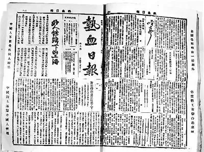 1925年6月4日《热血日报》创刊,这是中国共产党历史上的第一份日报,它诞生于五卅运动的高潮中,由瞿秋白主编,每天出版8开4版一张,成为党宣传、组织、推动这一伟大的反帝爱国斗争的舆论先锋。《热血日报》只出了24期,当年6月底被租界巡捕房查封而停刊。它与五卅运动一起,在党的历史上留下了光辉一页。