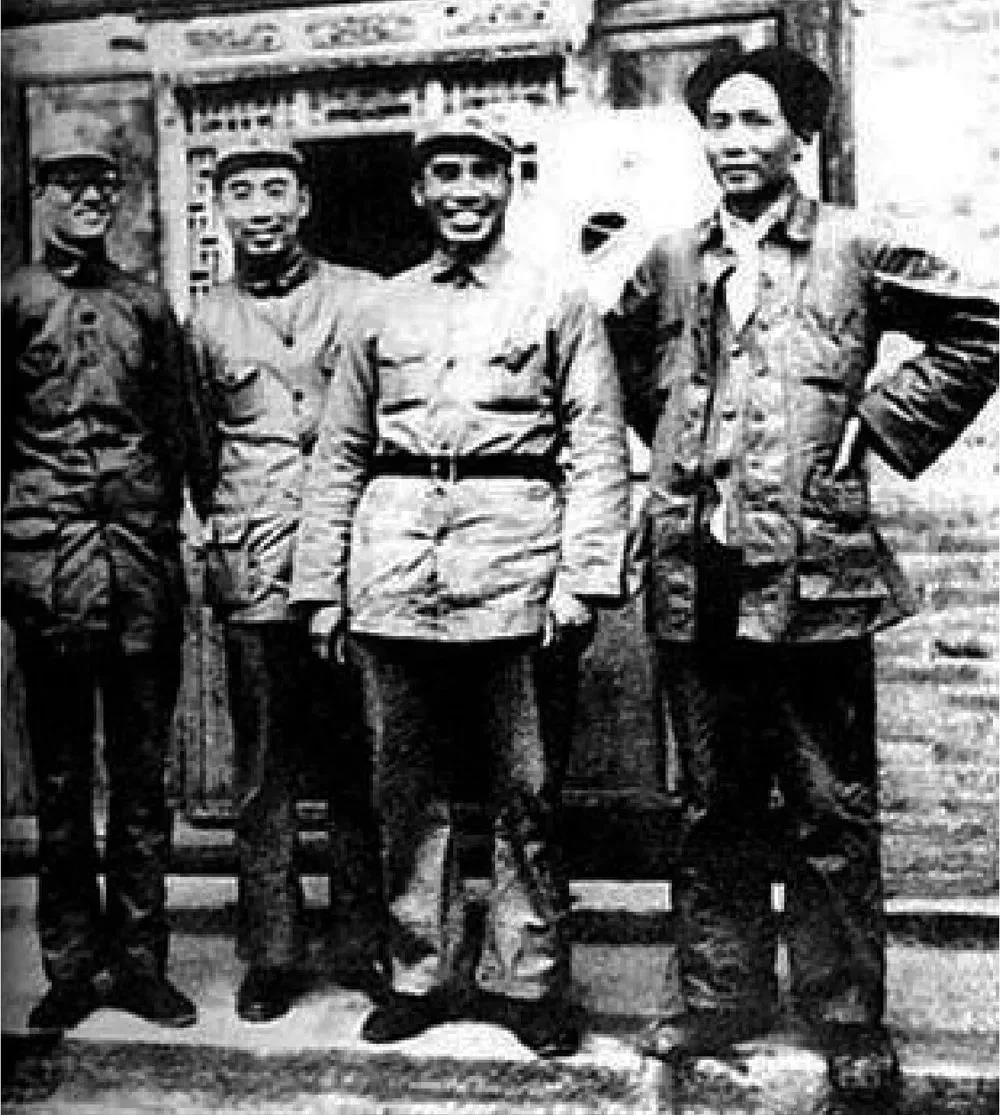 长征到达陕北后的毛泽东、朱德、周恩来、博古(右起)