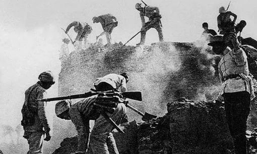 八路军在人民群众的协助下,攻克日、伪军据点后将碉堡拆毁
