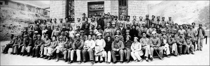 1942年5月5日,毛泽东等中共中央领导人同参加延安文艺座谈会的文艺工作者合影