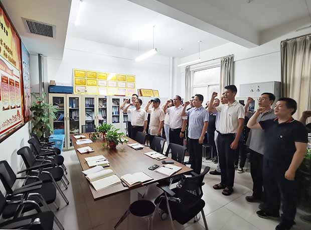 在主题党日活动上,雒保军带领参加活动的全体党员一起重温入党誓词,铿锵有力的宣誓声响彻会场。全体党员集体观看了新乡党史学习教育宣传片《百年红印》,生动展现波澜壮阔的百年中共新乡党史,全体党员干部重温了那段红色峥嵘岁月,心灵再次受到洗礼,进一步激发了大家的爱国爱党热情。