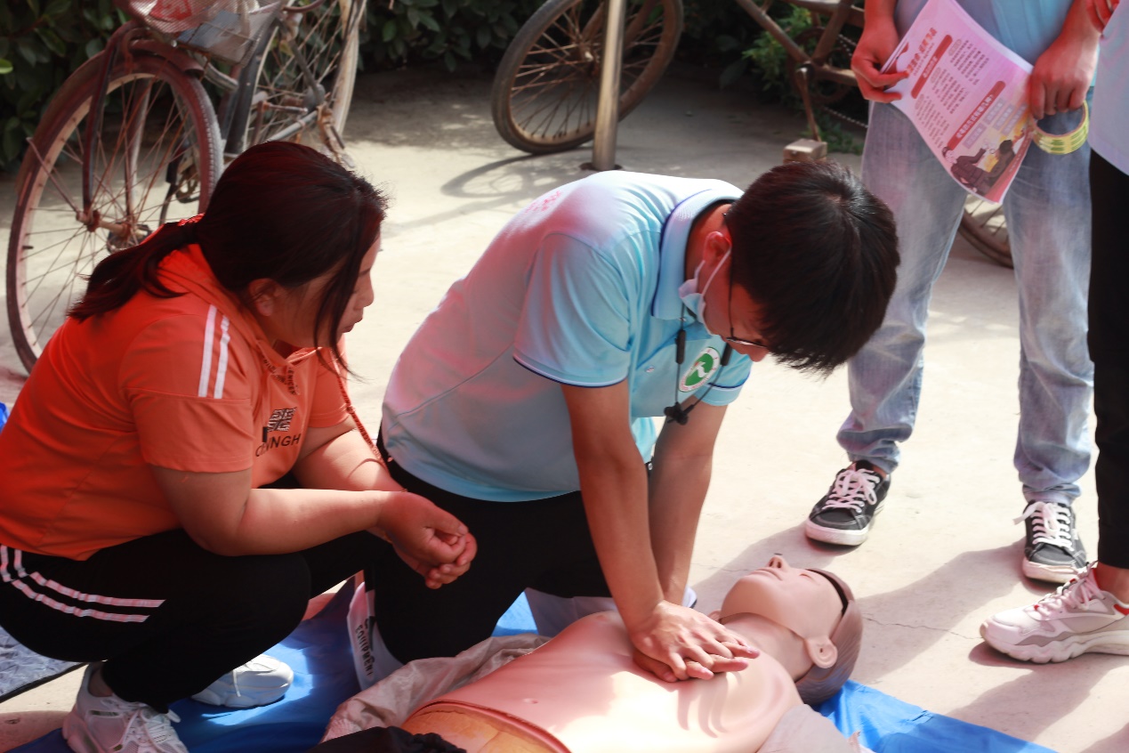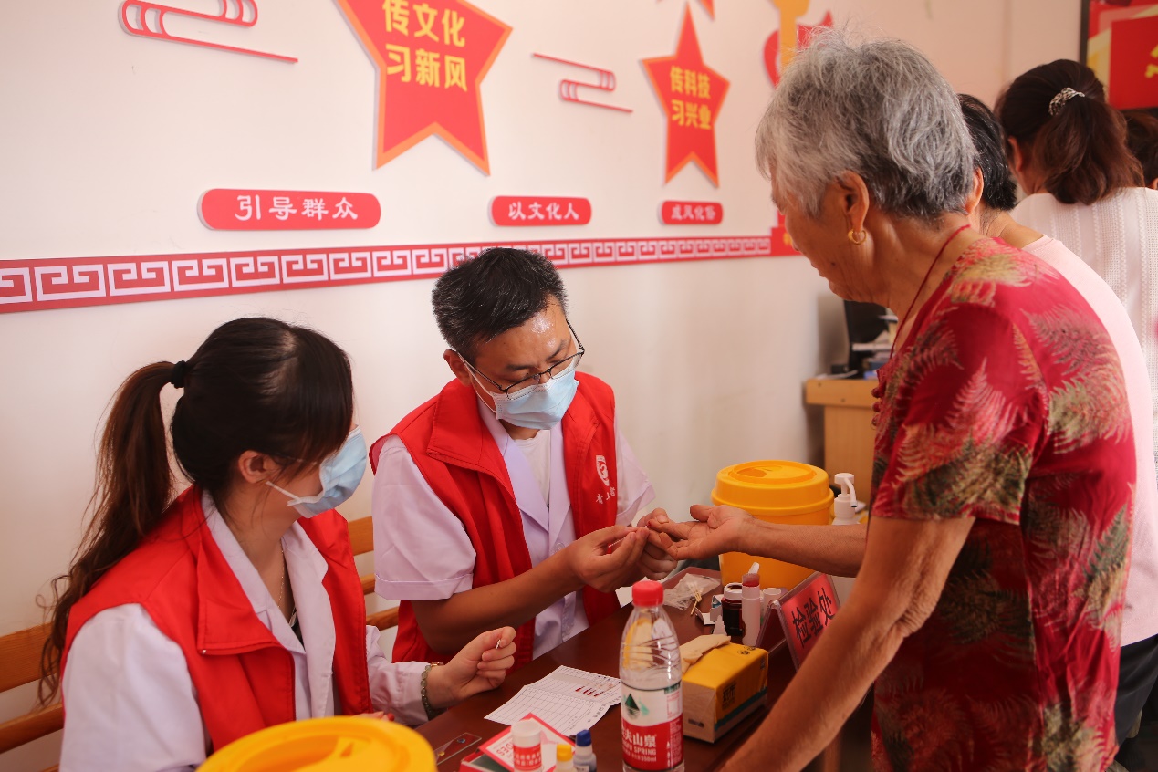 花木繁盛的村委会大院里,熙来攘往,热闹非凡。儿科、心血管、神经内科、呼吸内科、眼科等14个科室的数十位专家详细问诊,耐心检查,向患者给出用药、慢病管理和康复护理等方面的建议,让任庄村群众在家门口、不出村就享受到优质的医疗卫生服务。学生实践团的成员们热心引导前来就诊的村民,积极帮助老人检测血糖、血压、做心电图检查。黄金四分钟实践团向老乡们宣讲心肺复苏术和人工呼吸等急救知识。在义诊现场近旁的村文化服务中心,七彩假期实践团学生实践成员为孩子们进行课堂辅导,讲解“七步洗手法”,增强他们的卫生保健意识。现场氛围热烈,“老师”教得投入,“学生”学得认真,教学效果“立竿见影”,小朋友纷纷与学生志愿者们切磋比拼,欢笑不断。