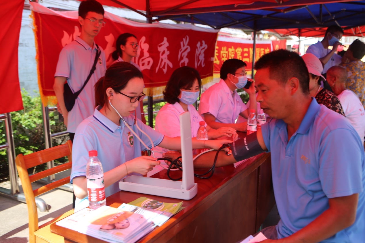 基层义诊是我校暑期“三下乡”社会实践活动的特色活动,医疗卫生志愿服务团作为实施“卫生下乡”的骨干队伍,多年来积极响应国家“乡村振兴”和“健康中国”战略,本着人民至上、健康至上的理念,积极整合我校优质医疗卫生资源,主动下沉到基层,为人民群众提供全方位全周期健康服务,为新医学子进一步增强爱国爱党爱民的信念,提升职业精神开辟一堂“大思政课”,使青年学生在社会课堂中受教育、长才干、作贡献提供践行机会。(供稿:任爽 王卓含 杨迪 胡宗光)