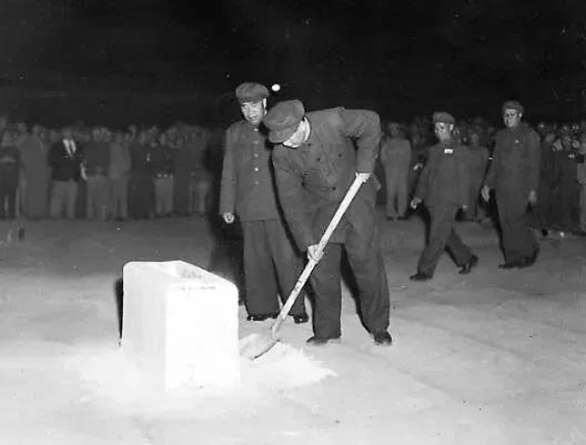 9月30日晚6时,中国人民政治协商会议第一届全体会议代表在天安门广场举行人民英雄纪念碑奠基典礼
