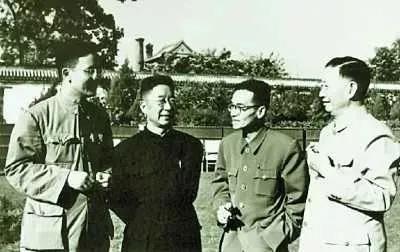 参加一届全国人大一次会议的华罗庚、老舍、梁思成、梅兰芳在休息时交谈