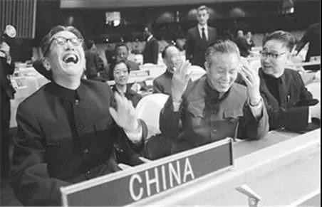 中国恢复联合国席位后,中国代表团笑逐颜开