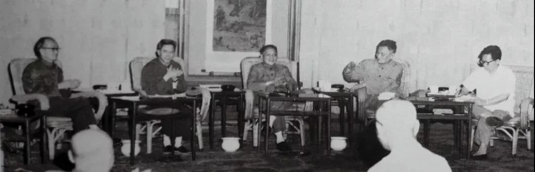 1977年8月8日,邓小平(中)在科学和教育工作座谈会上讲话