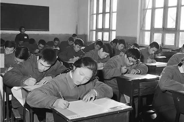 1977年冬天,高考考场,考生正在认真答卷。