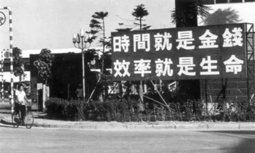深圳蛇口工业区办公楼外写着“时间就是金钱,效率就是生命”的标语牌