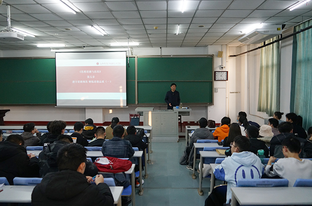 12月9日下午,校党委委员、工会主席邵金远以《思想道德与法治》为题,在3301教室给青年学生上了一堂生动的思想政治教育课。