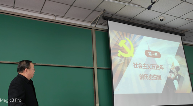 课堂上,王辉从什么是美好社会的问题生动切入,高屋建瓴地讲授了社会主义500年的发展史,通过讲道理与讲故事相结合的方式,详细讲授了社会主义从空想到科学的飞跃,从理想到现实的飞跃,从一国到多国的飞跃,以及社会主义在中国焕发的生机活力。在授课过程中,王辉结合自身科研工作经历,鼓舞青年学生们立志高远,脚踏实地,坚定社会主义共产主义信念,争做新时代有为青年。王辉授课内容丰富,视野宏阔,现身说法,语言朴实,极大地调动了同学们的学习兴趣与奋斗热情。同学们纷纷表示,要向身边的奋斗楷模学习,将个人梦融入中国梦。(供稿:朱培丽)