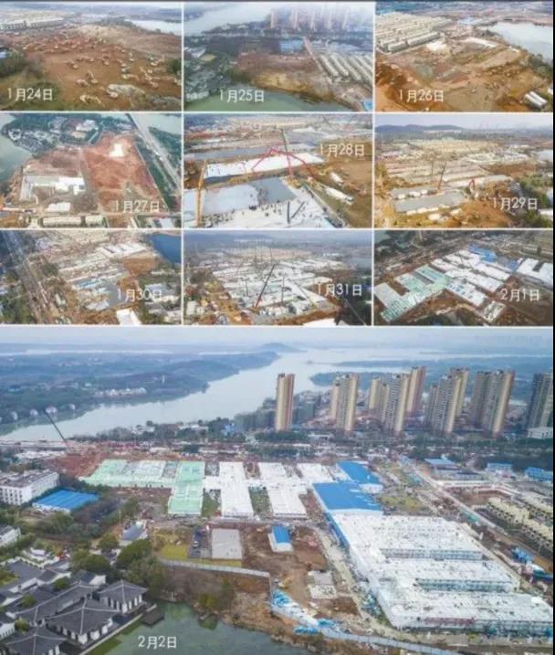 武汉火神山医院从开始设计到建成完工的过程,历时10天(无人机拍摄)