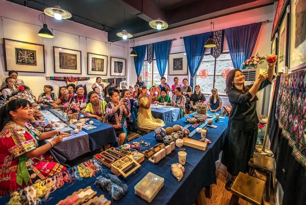 2018年8月,在广西壮族自治区柳州市融水苗族自治县举办的“巧手助脱贫”苗族刺绣就业培训班上,来自香港的老师讲解传统刺绣知识。苗、瑶、侗、壮、水等少数民族村寨的53名贫困户妇女参加了培训。