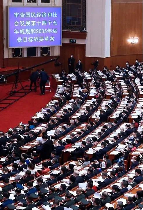 2021年3月11日下午,十三届全国人大四次会议表决通过关于国民经济和社会发展第十四个五年规划和2035年远景目标纲要的决议。19篇、65章、192节,翻开这份约7.5万字的规划纲要,一幅未来5年和15年中国发展的宏伟图景呈现在眼前。从党的十九届五中全会审议通过“十四五”规划和2035年远景目标建议,到人代会批准规划纲要,党的主张通过法定程序转化为国家意志,成为全国各族人民齐心协力全面建设社会主义现代化国家的行动纲领。