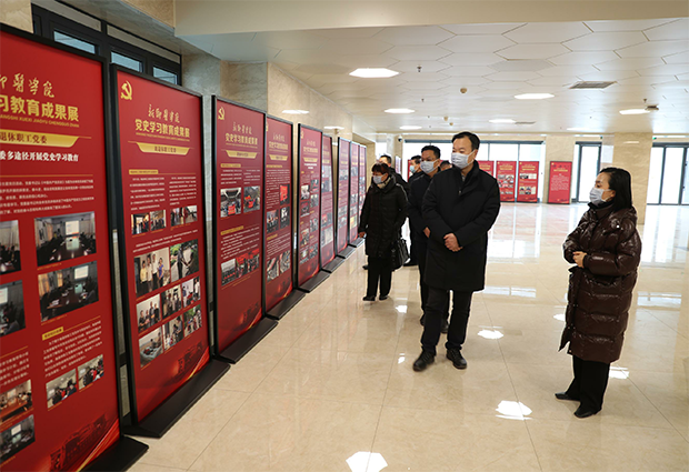为全面展示全校党史学习教育的典型做法和实际成效,学校在图书信息楼一楼大厅举办了党史学习教育成果展。1月11日上午,校长任文杰,党委副书记陈清江,党委委员、纪委书记郭凯英参观了成果展。党委办公室、党委组织部、党委宣传部、校长办公室等部门负责人一同参观。