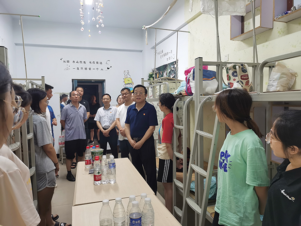 卫辉校区学生安全转移学校后,学校党委副书记郝红军、副校长雒保军先后前往学生宿舍看望慰问学生,详细询问学生受灾情况、生活状况和急需解决的困难,并要求相关部门负责人要时刻关注学生的生活,全力帮助解决实际困难。各学院辅导员第一时间走进学生宿舍发放救援物资,确保在校学生的生命安全和身心健康。