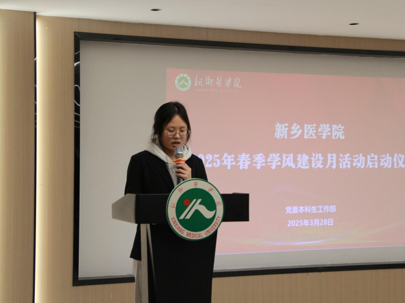 活动第一阶段,由华亿在线手机版(大中国区)大学生自律委员会刘文文同学宣读华亿在线手机版(大中国区)学风建设——学生优良学风养成倡议书,呼吁新医学子肩负“健康所系,性命相托”使命,践行学校精神。倡议涵盖多方面:以家国情怀锚定青春坐标,做有理想、有格局的医学人;以科学精神锻造硬核实力,善用手机与AI工具,培养创新习惯;以知行合一践行医学誓言,打造学习共同体,构建健康作息圈;以人文情怀涵养大医精诚,在志愿服务与心理减压中修炼身心。同时,倡议明确学习计划,鼓励学子点滴积累,助力学校建设,为医学事业发展贡献力量。