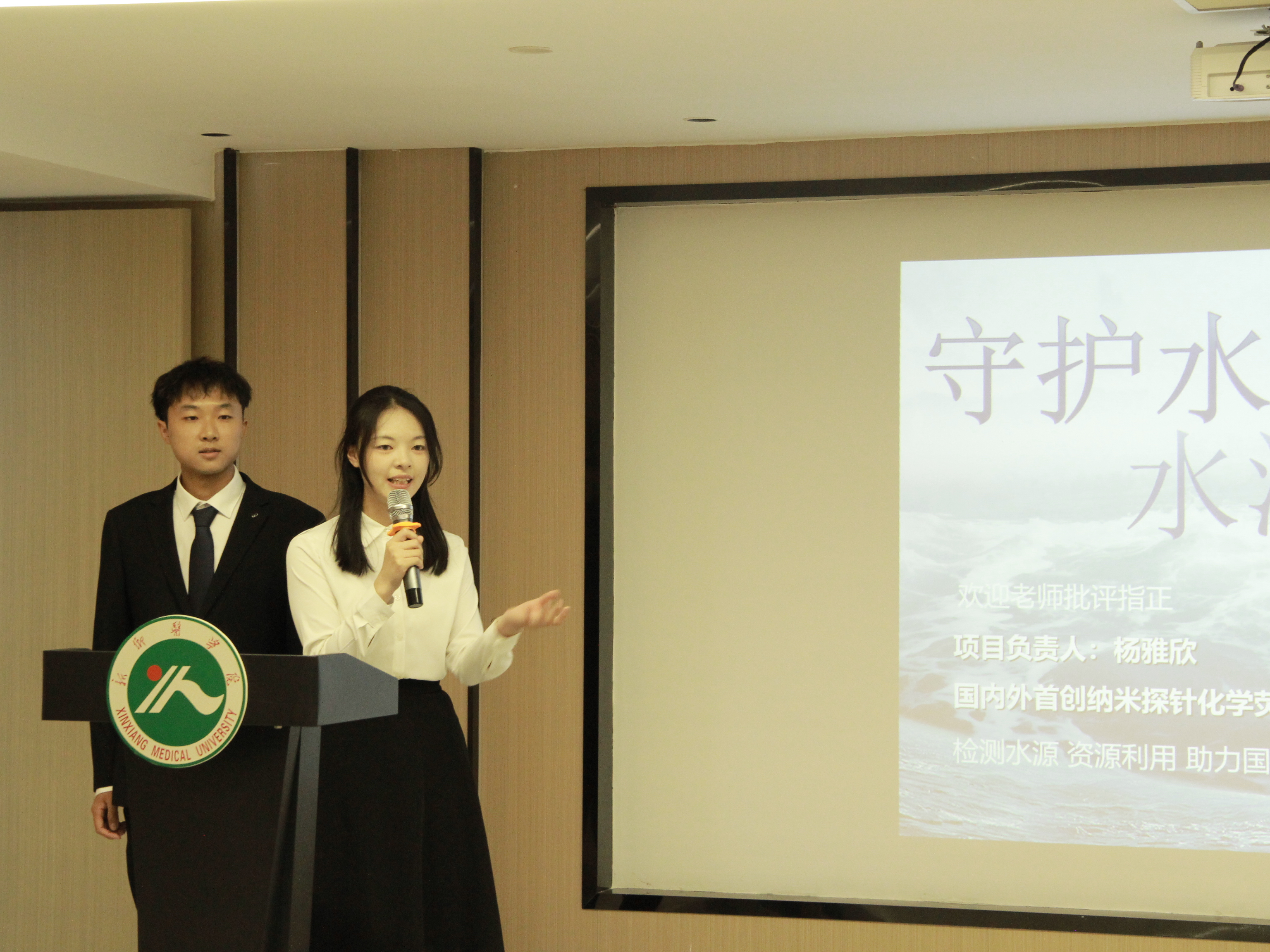 比赛过程中,每组选手有5分钟的时间展示自己的创新项目。选手们面向评委详细阐述了项目的创意来源、创新点、应用前景等内容。决赛现场亮点纷呈,各团队作品聚焦多元领域:有水产结合医用的生态养殖方案,有草药搭载智能的精准种植系统,有非遗连接AI的文化传承项目,有诊疗融合关怀的适老化医疗设备……选手们不仅以PPT、视频等形式展示研究成果,更纷纷拿出“硬核”实物——自制的实验器械、详实的观测手册、可操作的模型装置等,直观呈现项目的落地性与创造力。这些项目充分展现了新医学子敢闯会创的精神风貌与跨学科融合的创新思维,赢得现场阵阵掌声。
