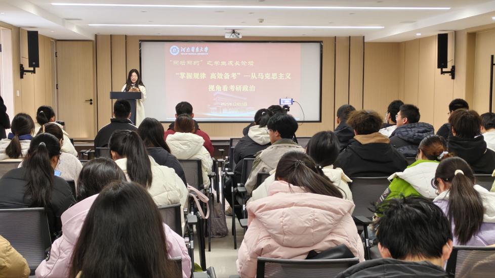 此次特邀河南师范大学外语学院陈晨老师主讲考研英语专题《考研英语核心考点与解题思路》。河南师范大学马克思主义学院王瑶老师主讲政治专题《掌握规律、高效备考——从马克思主义视角看考研政治》,现场座无虚席,百余名见实习学子线上参会。两场讲座分别围绕考研英语与考研政治的高效备考策略展开,既为备战考研的同学指明方向,也为低年级学生提供了长远的学习规划参考。