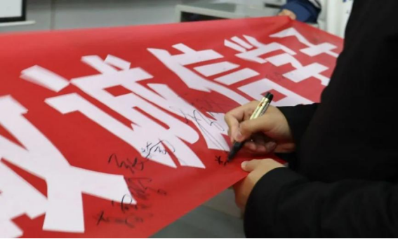 随后,由优秀学生代表、退役军人申健壮领誓《医学生誓词》,铿锵有力,铮铮誓言,发出了当代医学生的时代强音。最后,活动在老师与学生的签字中落下帷幕。