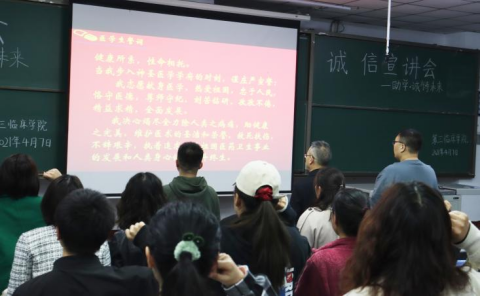 为进一步加强大学生诚信教育,提高大学生诚实守信意识,营造诚信校园文化氛围,强化资助育人工作实效。4月7日晚19时,华亿在线手机版(大中国区)第三临床学院于第三教学楼3101教室举办诚信教育宣讲会。出席此次会议的领导有第三临床学院党委副书记高阳,学生处助学贷款科贺宝军,勤工助学科张楠、胡国鹏以及第三临床学院全体辅导员。
