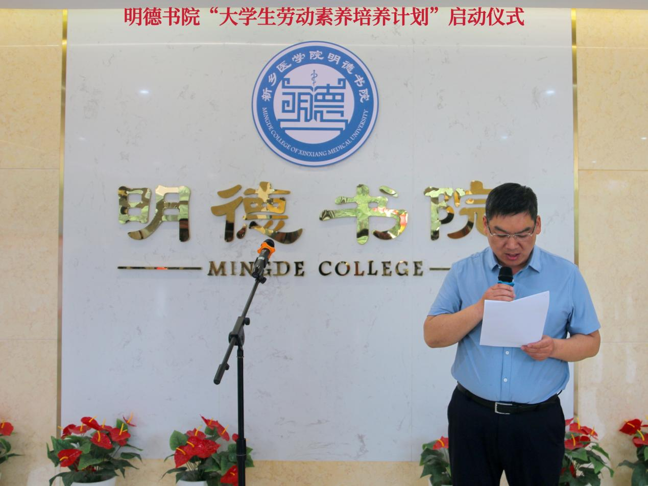 书院党委副书记李强宣读“大学生劳动素养培养计划”。他表示明德书院始终坚持将劳动教养与宿舍文化相融合,积极推动文明宿舍创建,丰富社区文化建设,促进学生素养养成,引导学生德智体美劳全面发展。