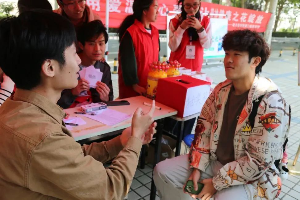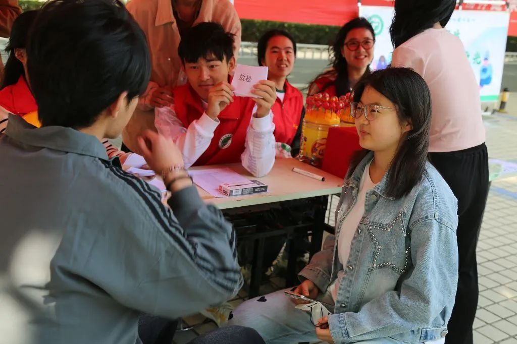 活动进行过程中,同学们踊跃参与知识问答、你划我猜、情绪碎纸机等精神卫生主题相关活动。许多同学结伴而来,气氛热烈。同学们完成游戏后,纷纷在宣传横幅上签名并美好祝愿。殷殷寄语,情真意切。