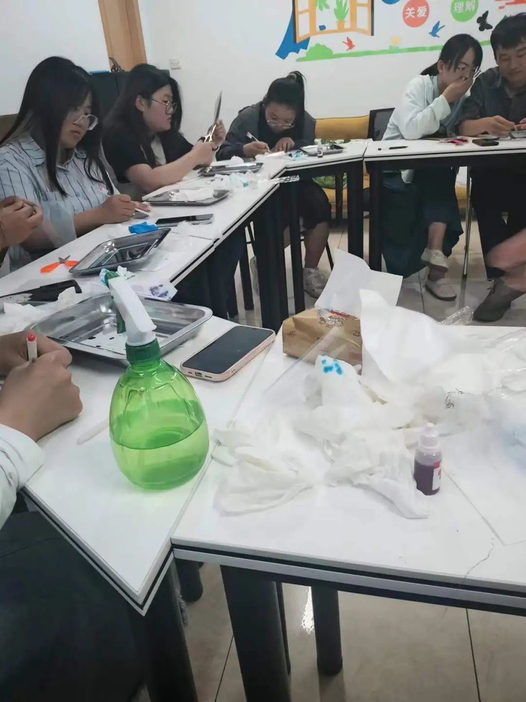 待树叶晾干后,大家小心翼翼地将它们夹入透明的塑料薄片中,裁剪成独一无二的书签。这些书签,不仅承载着自然的印记,更镌刻着每个人独特的心情故事和这次心理活动的温馨回忆。通过这一系列从心出发、再到手作的艺术转化,同学们不仅学会了以新的视角观察自我,也收获了一枚枚能够随时翻阅心情的“自然诗篇”。此次活动,就这样在创意与情感的交织中,悄然绽放出了它独有的美丽与深意。