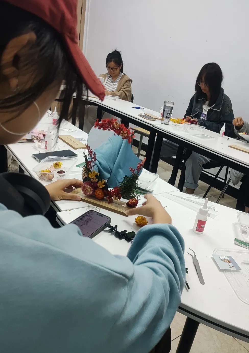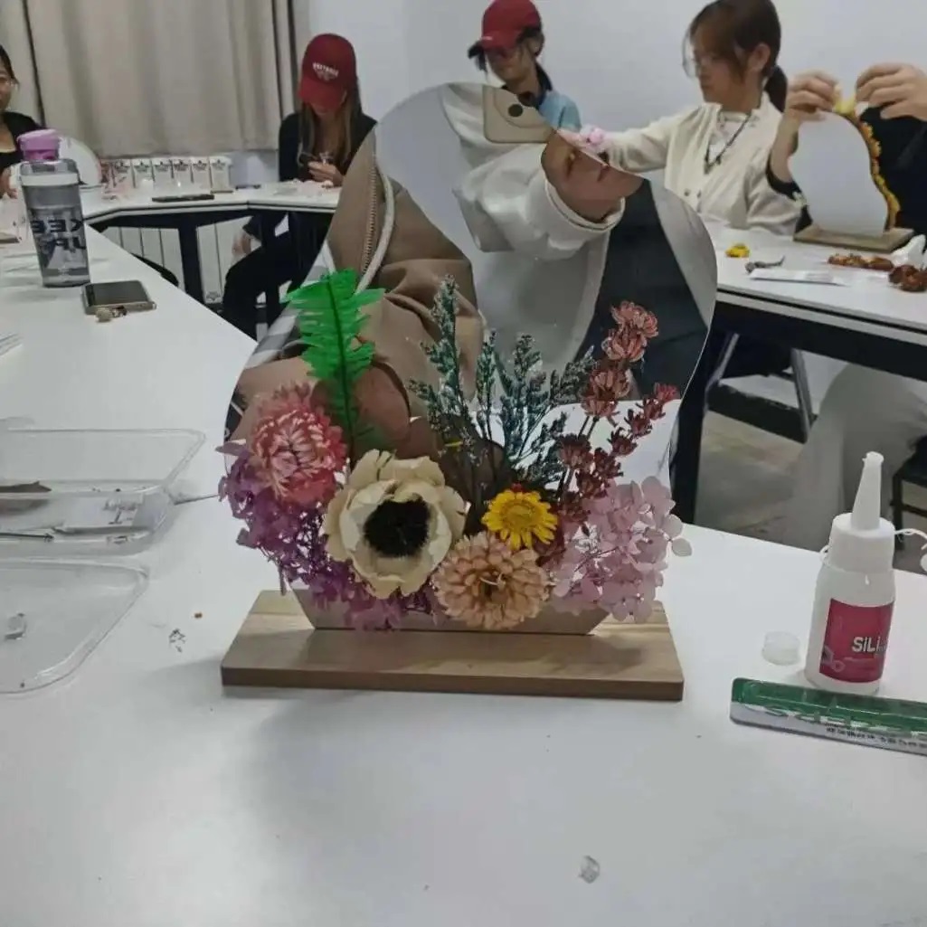 10月份,本科生工作职工党支部组织了润心赋能 护航成长——艺术镜活动活动,参与者通过手中的干花一点一点装饰镜面,使艺术镜面镶嵌上漂亮的花草植株,将圆满如意、完美和内心美好的情感表露出来,把心中最美好的祝愿寄寓在其中,真正做到了意会言传的情谊传达作用。