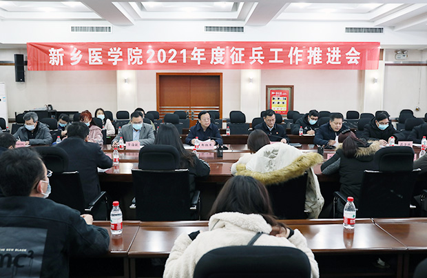 1月15日上午,我校在办公楼六楼会议室召开学校2021年度征兵工作推进会。校党委副书记郝红军出席。教务处、武装部等相关部门负责人,各学院主管学生工作负责人及辅导员代表参加会议。
